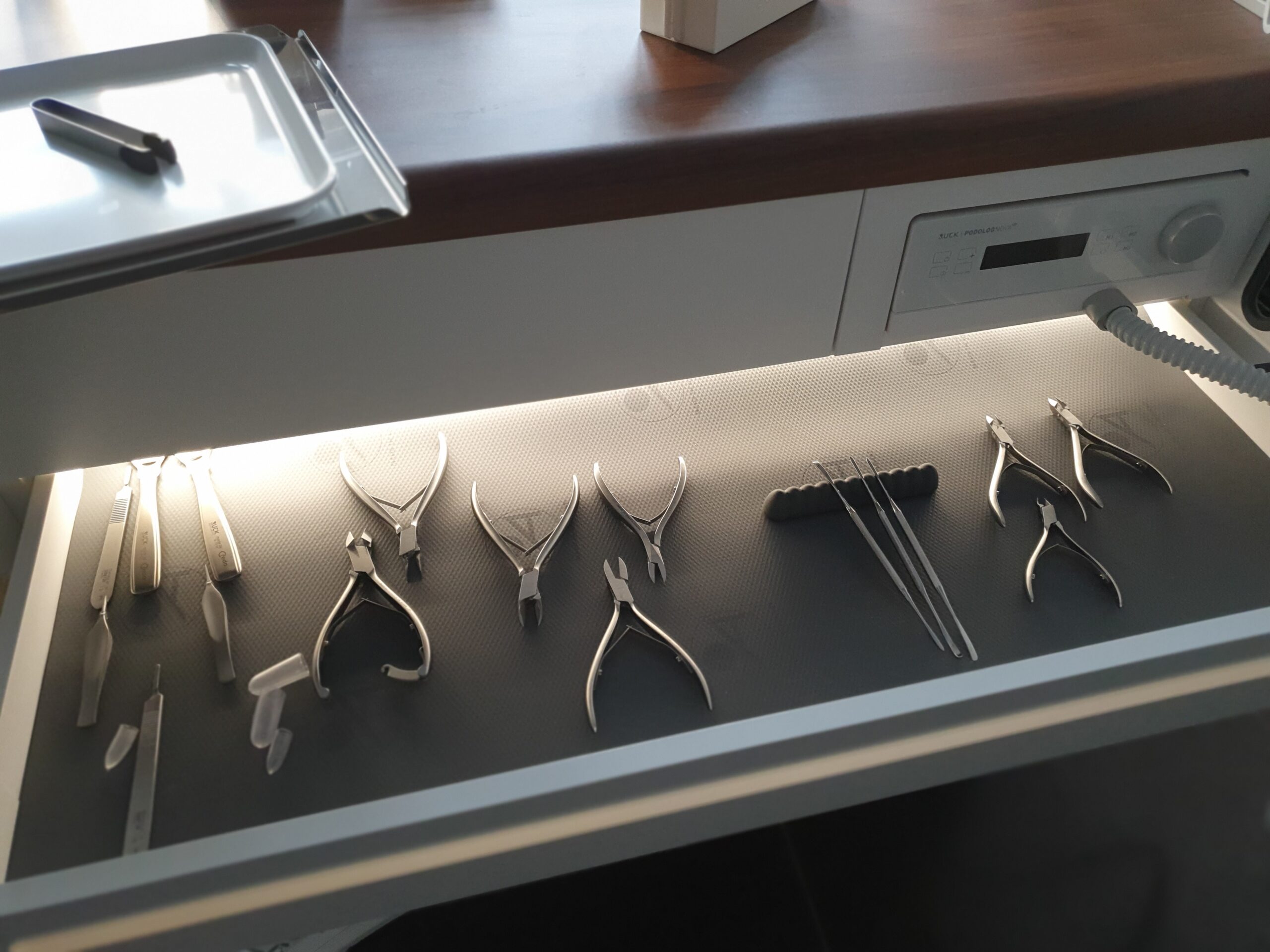 Der Nagel wird formgerecht gekürzt, deformierte Nägel ausgeglichen. Profitieren Sie bei eingewachsenen Nägeln von einer Nagelspange. Dies ist die sanfteste und praktisch schmerzfreie Methode, einen eingewachsenen Nagel zu behandeln.